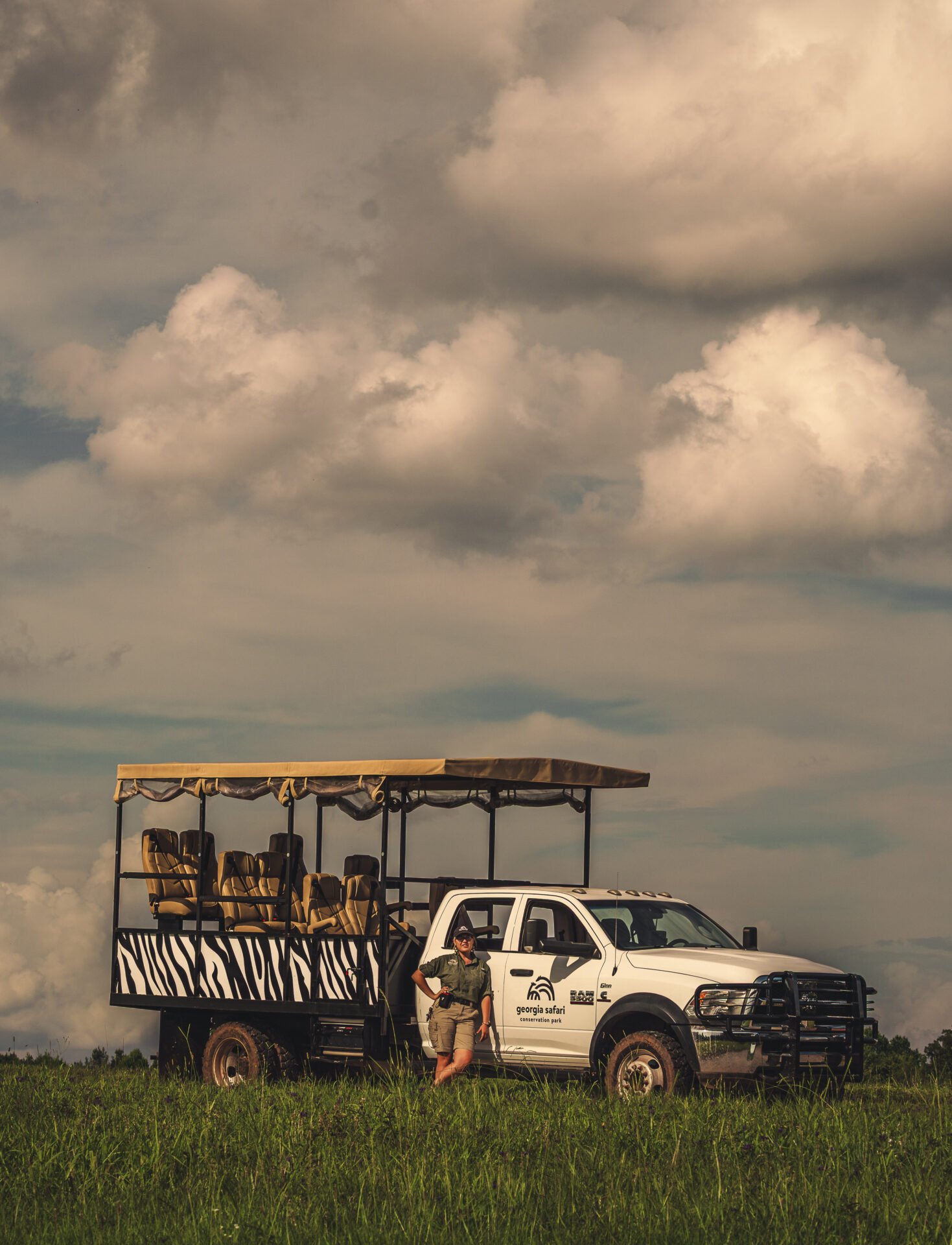 Boarding one of our custom safari vehicles, guests will take an immersive and interpretive guided tour of an expansive wildlife savanna comprised of the open plains and forests in a 530-acre park.