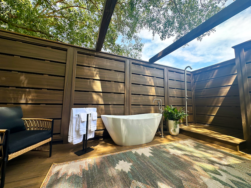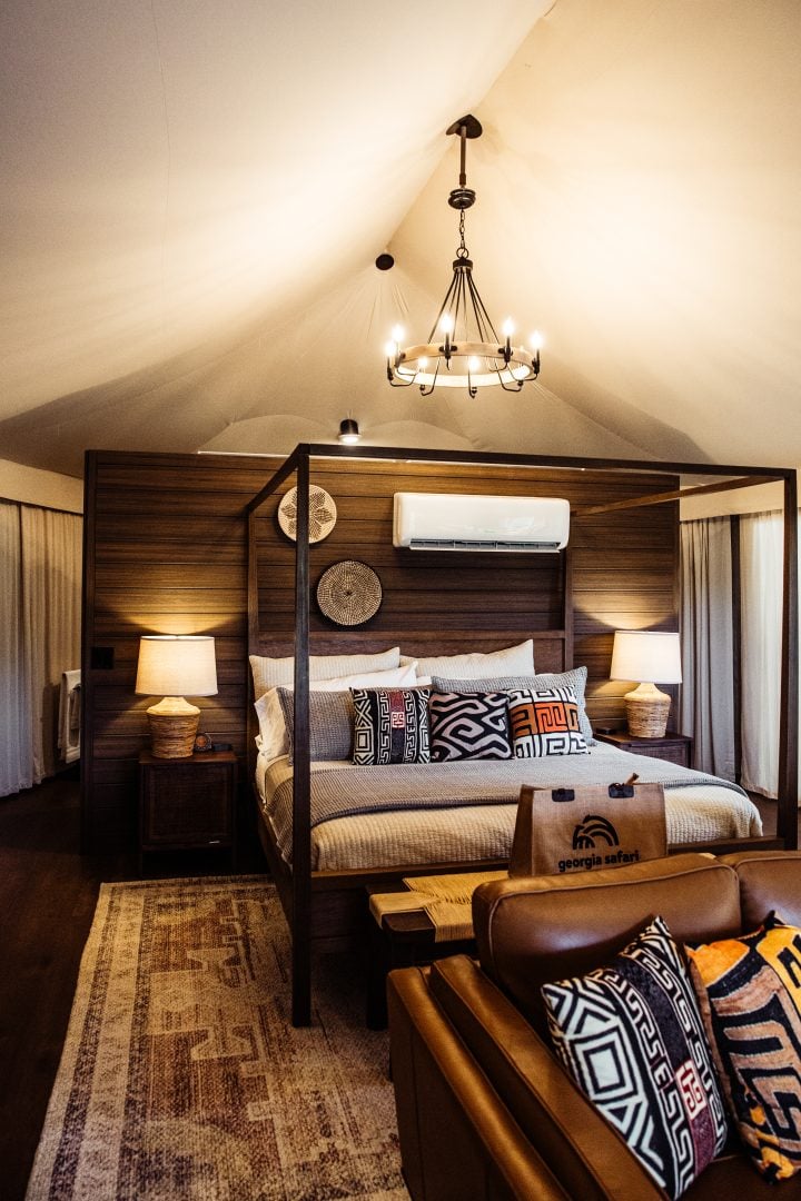 For a truly extraordinary experience, step out onto one of your two private decks. Adjacent to the bedroom, glass doors open onto a private deck with a secluded outdoor bathing area. Surrounded by the sounds of nature and embraced by the gentle breeze, you can relax in your private open-air bathtub. Bask in the warmth of the sun or admire the starlit sky as you enjoy this intimate and sensory experience with your loved one. From your main living area, step outside onto an additional private deck and relax comfortably as you enjoy the breathtaking views of animals roaming the open savanna.